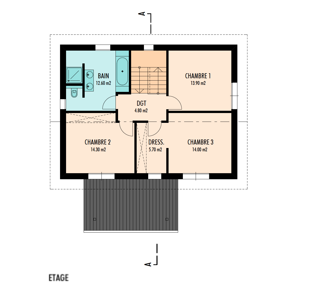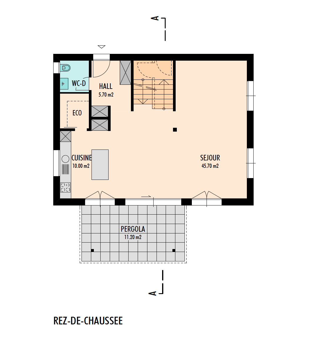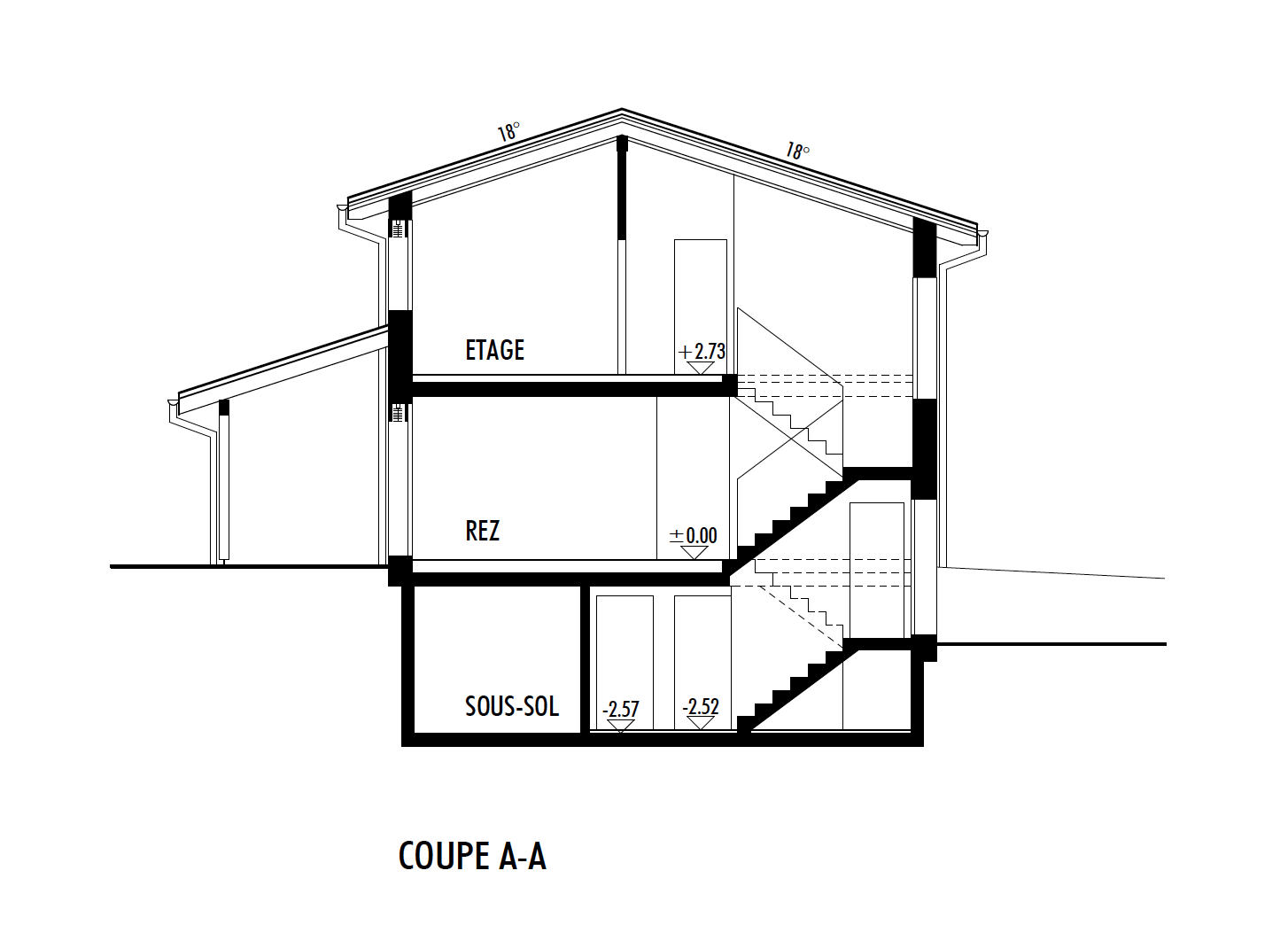 Villa sur 3 niveaux . Grande cuisine ouverte, séjour/salle à manger, 3 belles chambres, salle de bain avec WC, douche et baignoire – sous-sol avec cave et buanderie – chauffage par PAC - Plans et photos présentés à titre d’exemple, ces projets sont personnalisables au gré des envies et besoins du client -